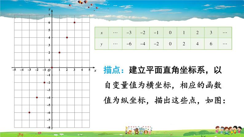 描点:建立平面直角坐标系,以自变量值为横坐标,相应的函数值为纵坐标,描出这些点,如图: