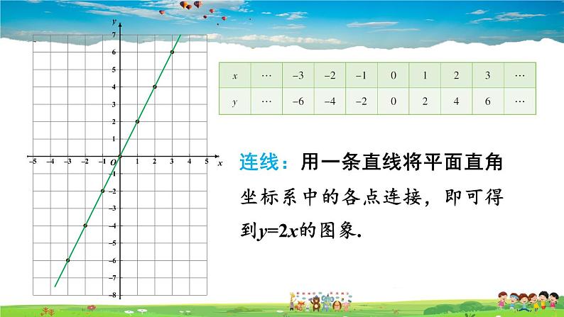 连线:用一条直线将平面直角坐标系中的各点连接,即可得到y=2x的图象.