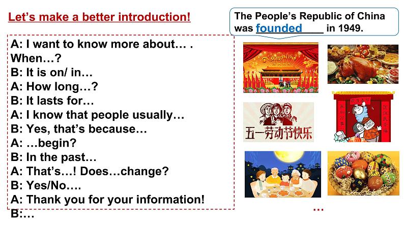 A: I want t knw mre abut… . When…?B: It is n/ in…A: Hw lng…?B: It lasts fr…A: I knw that peple usually…B: Yes, that’s because…A: …begin?B: In the past…A: That’s…! Des…change?B: Yes/N….A: Thank yu fr yur infrmatin!B:…