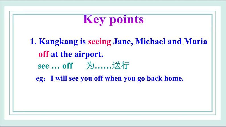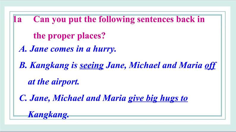1. Kangkang is seeing Jane, Michael and Maria ff at the airprt.