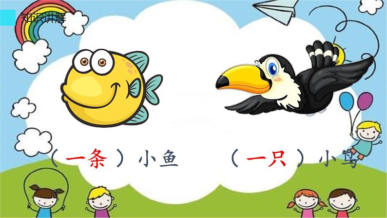 一( )桌子两( )茶,三( )柳树四( )花,五( )鱼儿水中游,六( )鸭子岸上耍,七( )书,八( )画,九( )彩旗随风飘,十( )娃娃排排座,滴滴答答吹喇叭,这些量词要记清,千万不要弄混它。