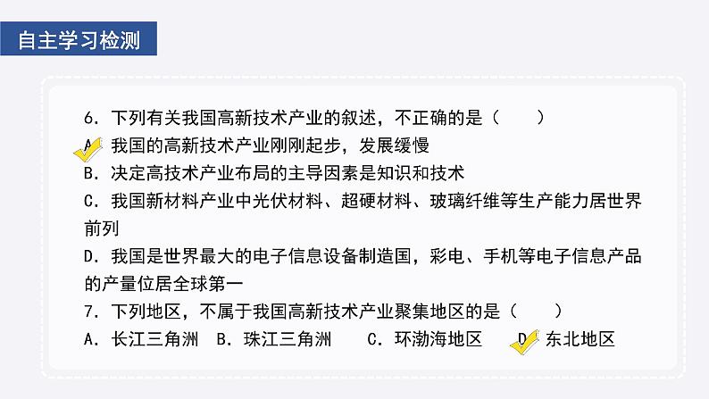 这是一份2020-2021学年第二节 工业教课课件ppt,共33页。PPT课件主要包含了自主学习检测,情境导入,钢铁工业,机械工业,纺织工业,战略性新兴产业,高新技术与我们的生活,课堂检测,课堂小结等内容,欢迎下载使用。