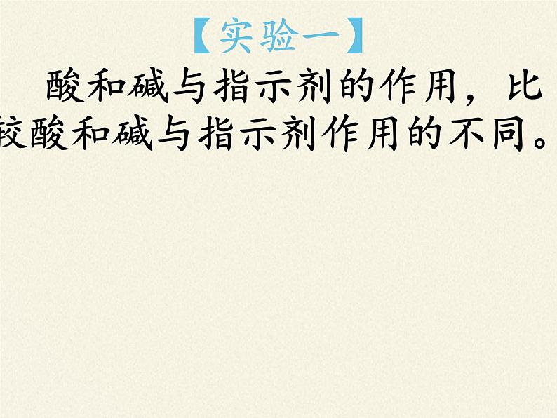 【实验一】 酸和碱与指示剂的作用,比较酸和碱与指示剂作用的不同。