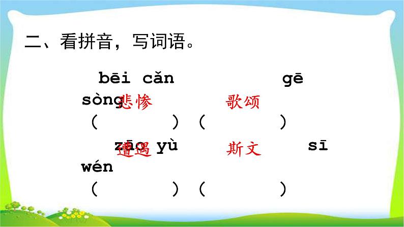 温馨提示:三、四字词语通常以仿写词语、按要求写词语(四字的还有根据语境填成语及补充成语)等方式出现,我们在平时要注意积累。