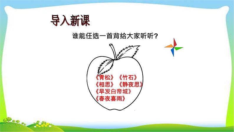 提示:用诗中的词语作依托,拓展思路,按照自己脑海里浮现的画面去说。要注意避免人云亦云,也要防止变成诗句解释。