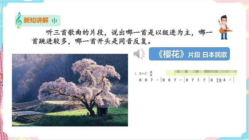 欣赏《樱花》 《伏尔加船夫曲》 《中国人民解放军进行曲》学习《西风的话》