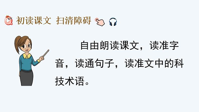 自由朗读课文,读准字音,读通句子,读准文中的科技术语。