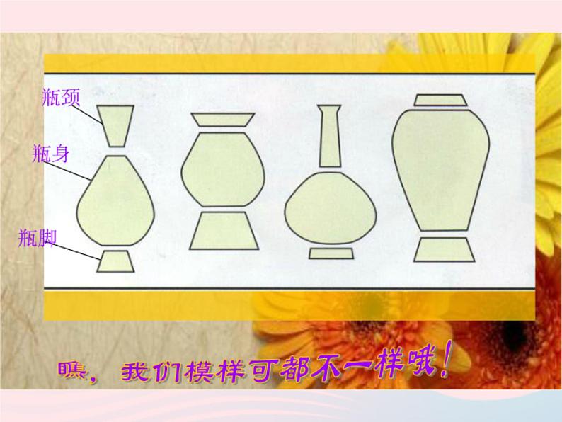 小学岭南版13. 大花瓶完整版课件ppt: 这是一份小学岭南版<a href="/ms/tb_c111626_t3/?tag_id=26" target="_blank">13. 大花瓶完整版课件ppt</a>,共16页。PPT课件主要包含了猜谜语,丰富多彩的花瓶,看一看,花瓶的外形特点,说一说,剪出奇异的花瓶世界,试一试,欣赏学生作品,两个“长脖子”花瓶,几种不同的花瓶造型等内容,欢迎下载使用。
