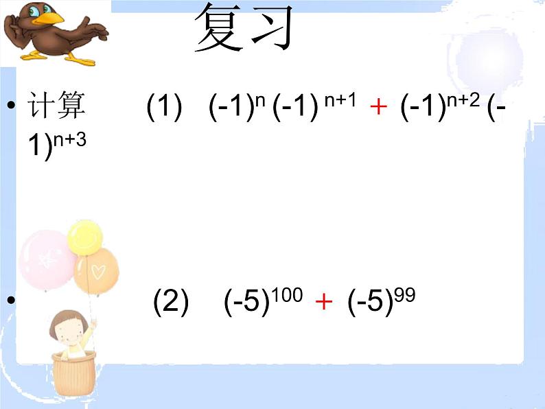 计算 (1) (-1)n (-1) n+1 + (-1)n+2 (-1)n+3 (2) (-5)100 + (-5)99