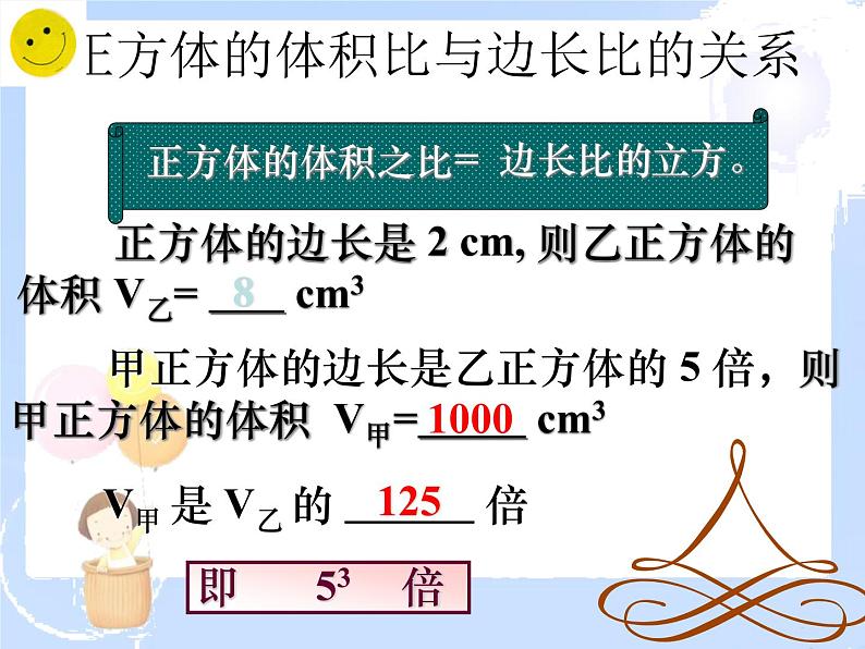 甲正方体的边长是乙正方体的 5 倍,则 甲正方体的体积 V甲= cm3