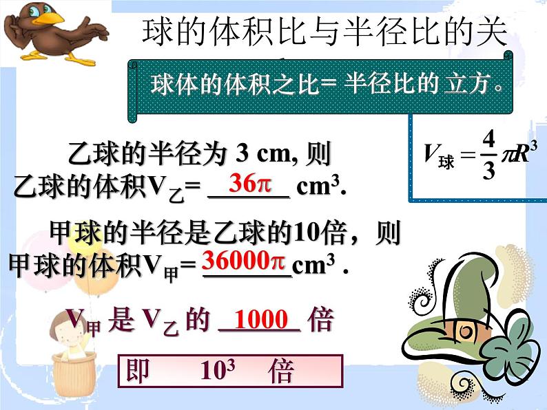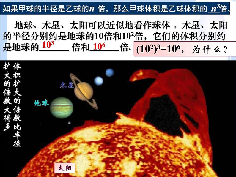 如果甲球的半径是乙球的n 倍,那么甲球体积是乙球体积的 倍。