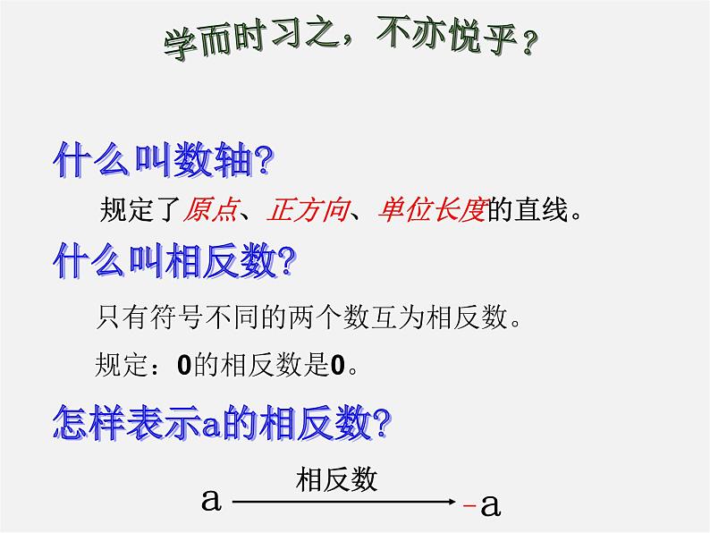 1绝对值 :在数轴上,一个数所对应的点与原点的距离叫做该数的绝对值.