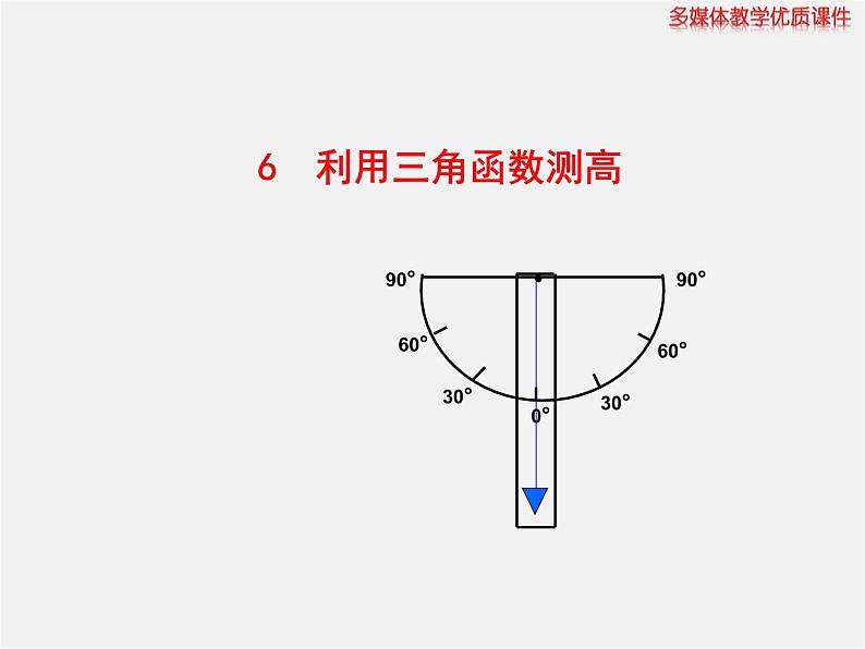 这是一份初中数学北师大版九年级下册第一章 直角三角形的边角关系6 利用三角函数测高教学课件ppt,共21页。PPT课件主要包含了使用测倾器测量倾斜角,设计实验报告单,课堂小结,布置作业等内容,欢迎下载使用。