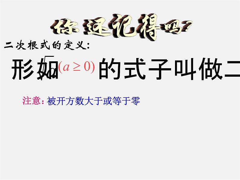 数学八年级下册1.1 二次根式示范课课件ppt: 这是一份数学八年级下册1.1 二次根式示范课课件ppt,共13页。PPT课件主要包含了学习目标,小试牛刀,①被开方数不小于零,3分类讨论思想,列不等式组,切入点,分类讨论思想等内容,欢迎下载使用。