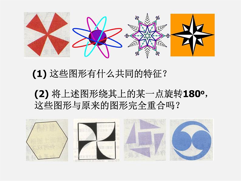 (2) 将上述图形绕其上的某一点旋转180,这些图形与原来的图形完全重合吗?