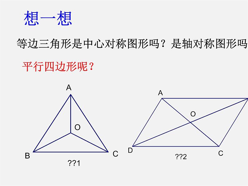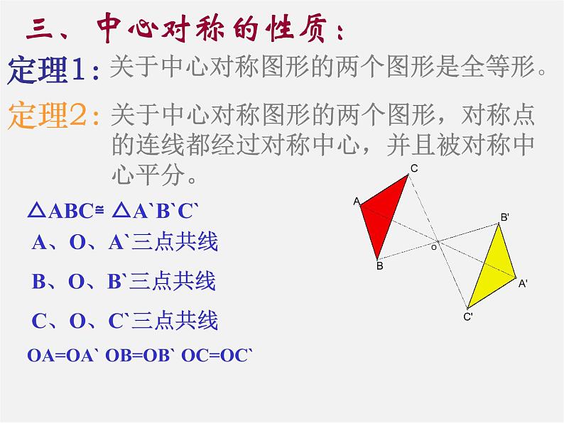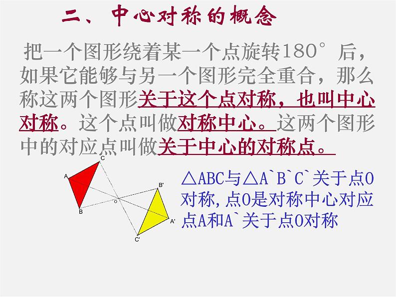 △ABC与△A`B`C`关于点O对称,点O是对称中心对应点A和A`关于点O对称