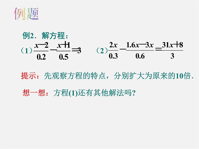 提示:先观察方程的特点,分别扩大为原来的10倍.