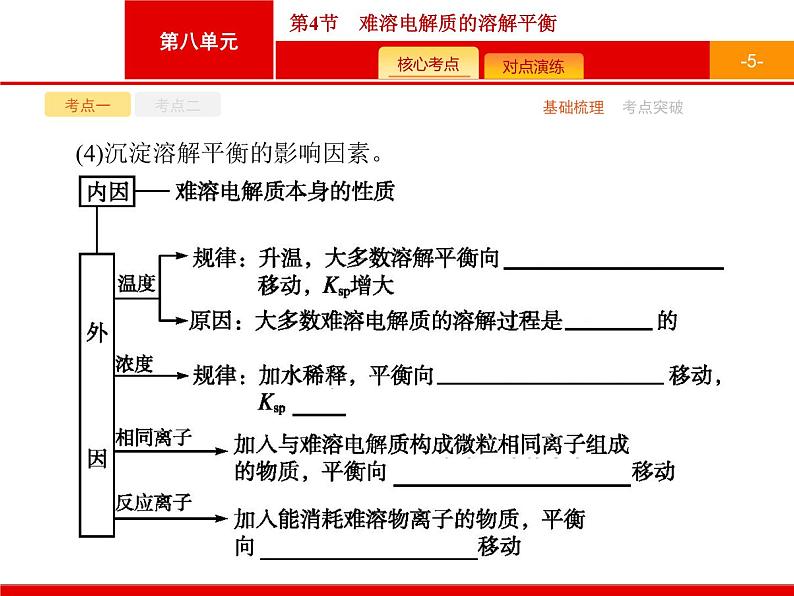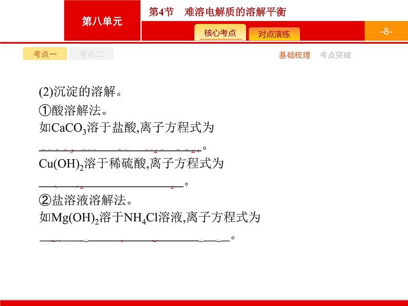 这是一份2022届高三统考化学人教版一轮课件:第8单元 第4节 难溶电解质的溶解平衡,共46页。PPT课件主要包含了-2-,-3-,考点一,考点二,基础梳理,考点突破,-4-,3特点,-5-,-6-等内容,欢迎下载使用。