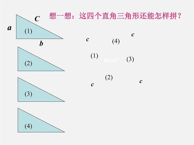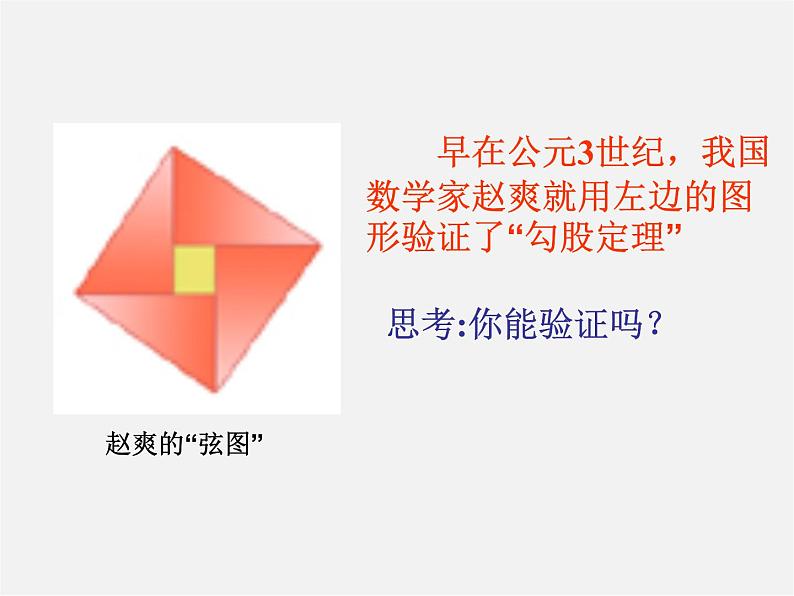 早在公元3世纪,我国数学家赵爽就用左边的图形验证了“勾股定理”