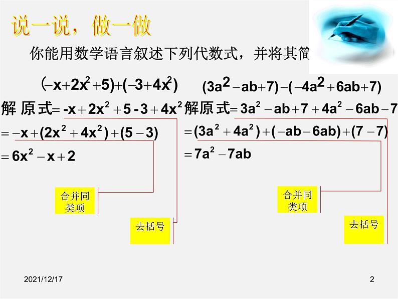 初中数学沪科版七年级上册2.2 整式加减课文内容ppt课件: