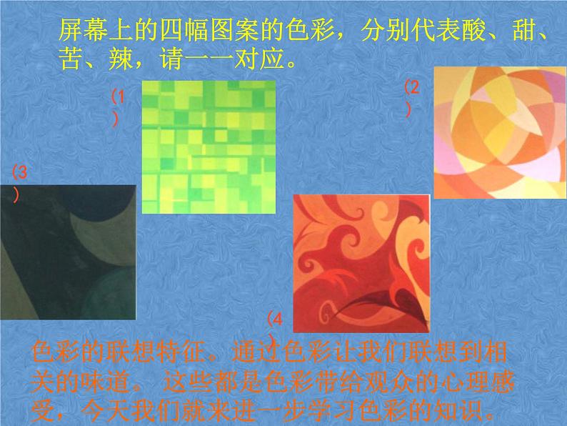 老师:同学们观察画面,屏幕中的图片色彩鲜明醒目还是柔和统一。