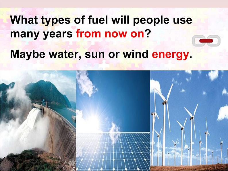 What types f fuel will peple use many years frm nw n? Maybe water, sun r wind energy.