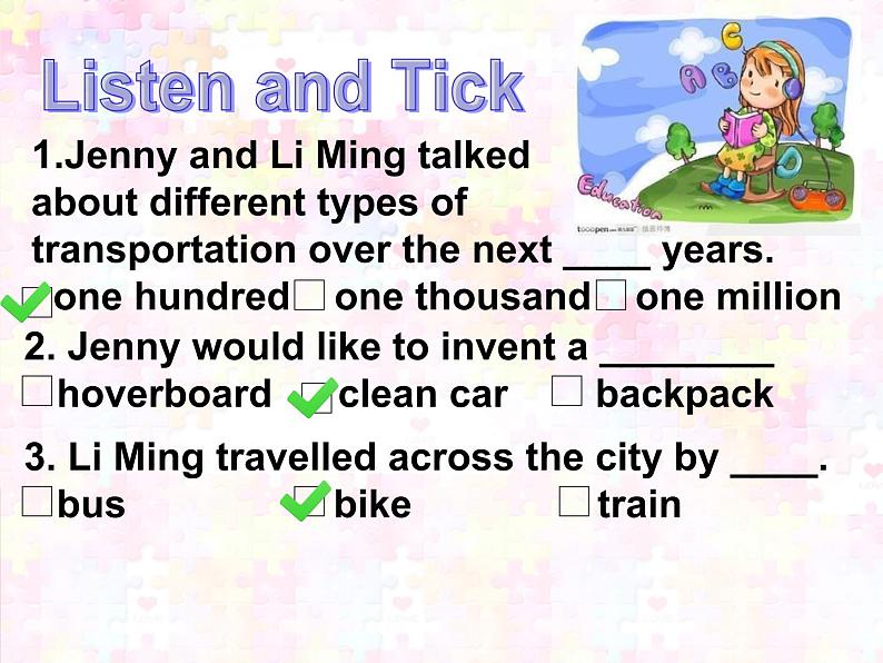 Jenny and Li Ming talked abut different types f transprtatin ver the next ____ years. ne hundred ne thusand ne millin