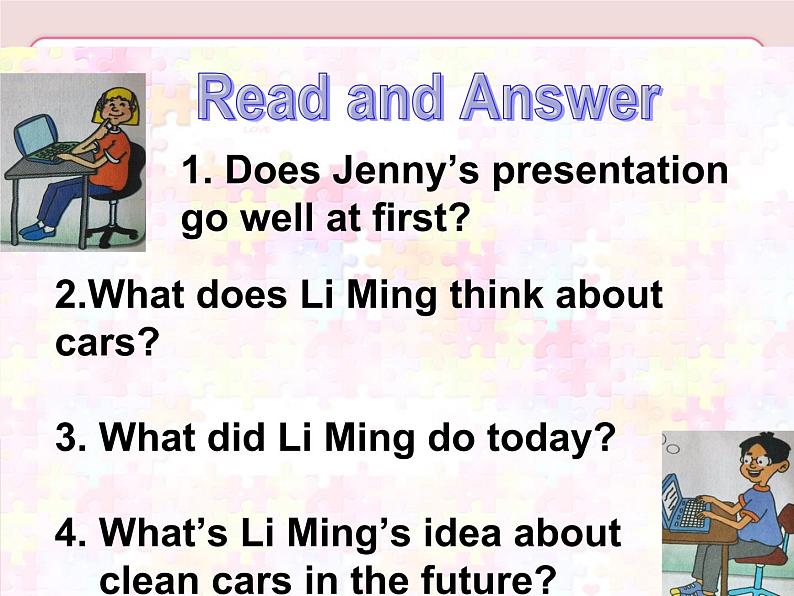 2.What des Li Ming think abut cars?3. What did Li Ming d tday?4. What’s Li Ming’s idea abut clean cars in the future?