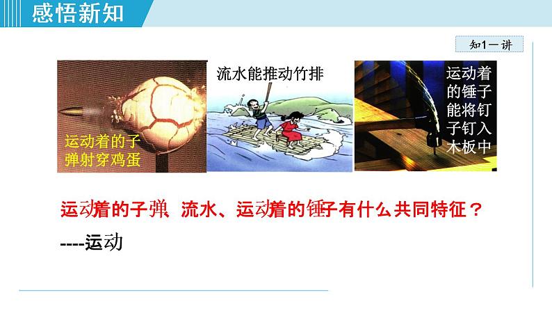运动着的子弹、流水、运动着的锤子有什么共同特征?----运动