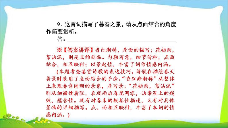 古诗词整体阅读鉴赏课时训练(主观题10道,选诗词10首)第三十九课时