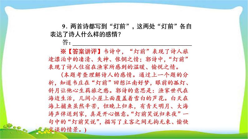 古诗词比较鉴赏课时训练(主观题10道,选诗词19首)第四十课时