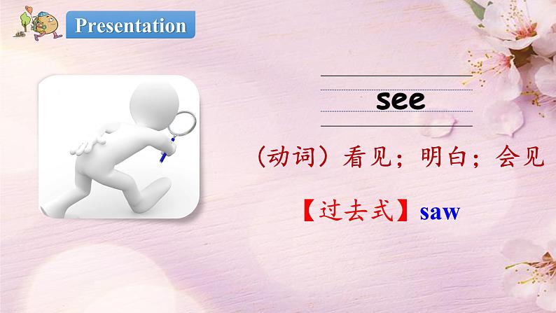 这是一份2020-2021学年Lesson2 What Are You Doing?课文内容课件ppt,共26页。PPT课件主要包含了Sorry,过去式saw,副词现在,动词画,名词图画照片,同义词photo,Practice,I’m ,Test,Sum-up等内容,欢迎下载使用。