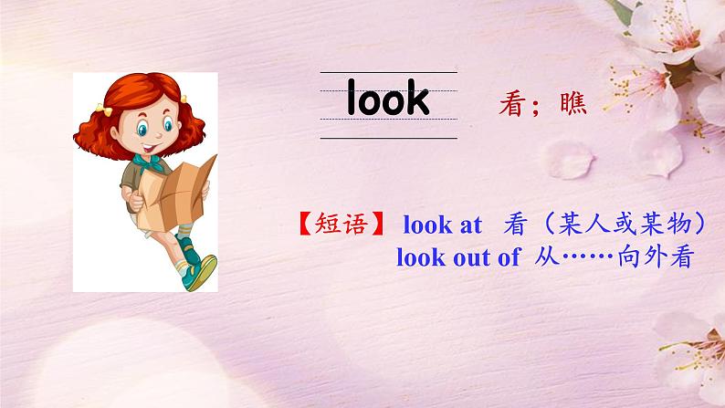 【短语】 lk at 看(某人或某物) lk ut f 从……向外看