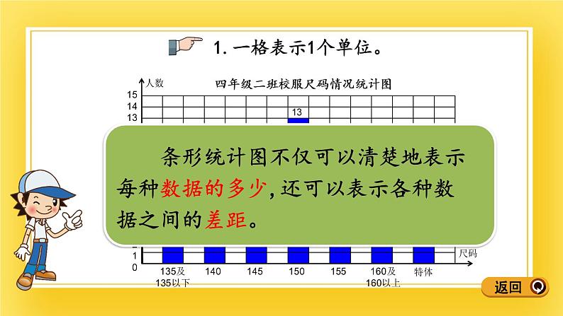 条形统计图不仅可以清楚地表示每种数据的多少,还可以表示各种数据之间的差距。