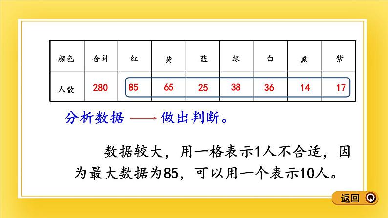 数据较大,用一格表示1人不合适,因为最大数据为85,可以用一个表示10人。