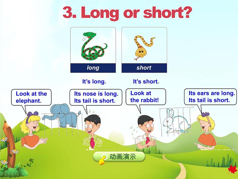 例2: tail; shrt Its tail is shrt.3. tail; 4. ears; lng shrt3. 4.