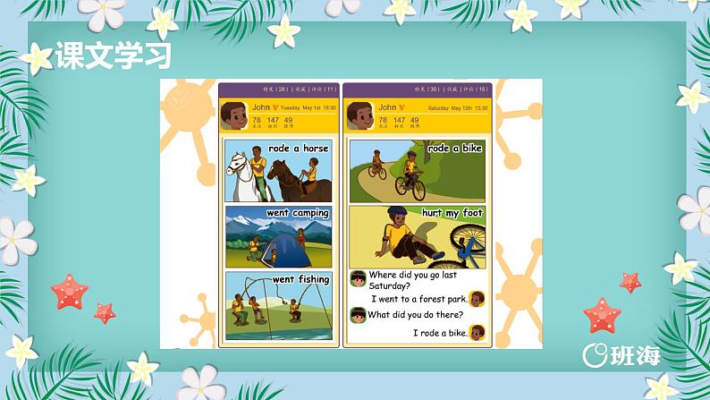 重点词汇:rde , went, camp, fish, hurt重点短语: hurt my ft , rde a hrse