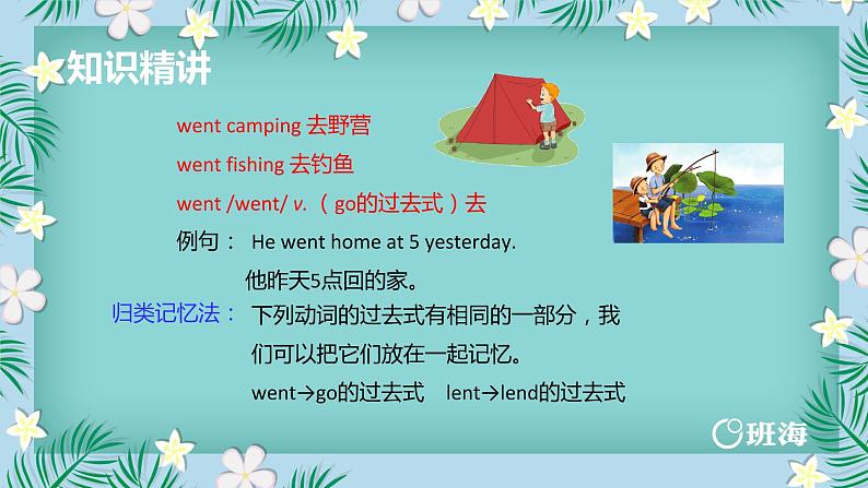 下列动词的过去式有相同的一部分,我们可以把它们放在一起记忆。went→g的过去式 lent→lend的过去式