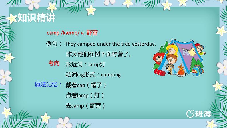 形近词:lamp灯 动词ing形式:camping