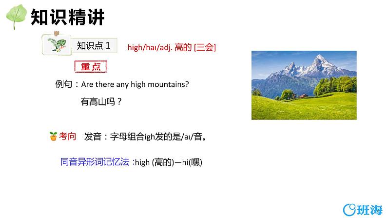 例句:Are there any high muntains? 有高山吗?