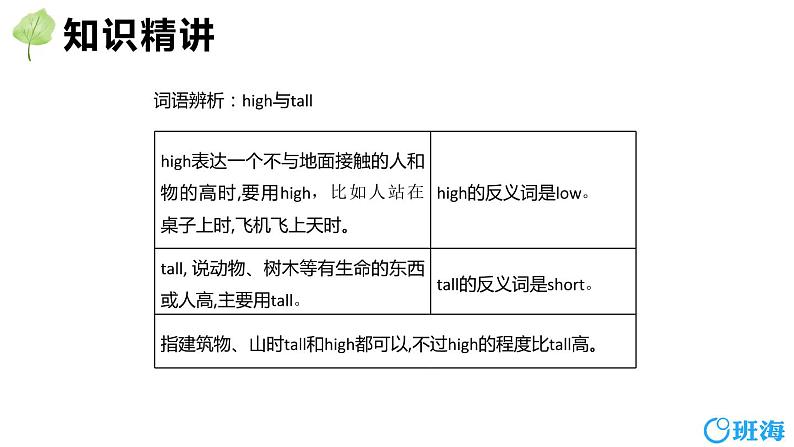 词语辨析:high与tall