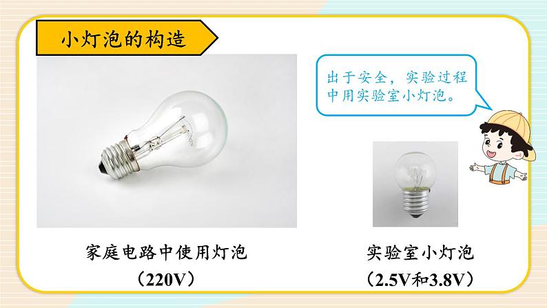 教科版 (2017)四年级下册2.点亮小灯泡教学ppt课件: 这是一份教科版 (2017)四年级下册2.点亮小灯泡教学ppt课件,文件包含第2课时点亮小灯泡pptx、221点亮小灯泡mp4、222认识小灯泡的结构mp4等3份课件配套教学资源,其中PPT共16页, 欢迎下载使用。