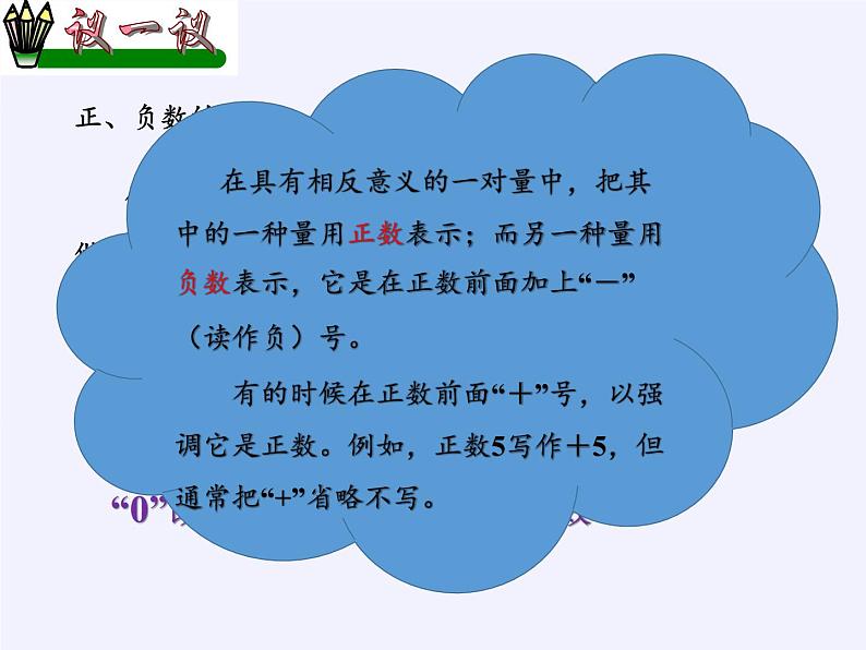 使用负数后,在表示具有相反意义的两个词语之中,只用一个词语就可以把事情说清。