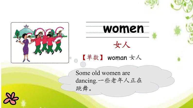 Sme ld wmen are dancing.一些老年人正在跳舞。