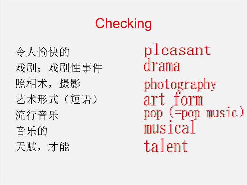 1.了解表示各种艺术形式的词汇。2.讨论各自喜欢的艺术形式并说明原因。