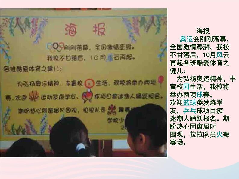 海报 奥运会刚刚落幕,全国激情澎湃。我校不甘落后,10月风云再起各班酷爱体育之健儿: 为弘扬奥运精神,丰富校园生活,我校将举办两项球赛,欢迎篮球类发烧学友,乒乓球项目痴迷潮人踊跃报名。期盼热心同窗届时围观,拉拉队员火舞赛场。