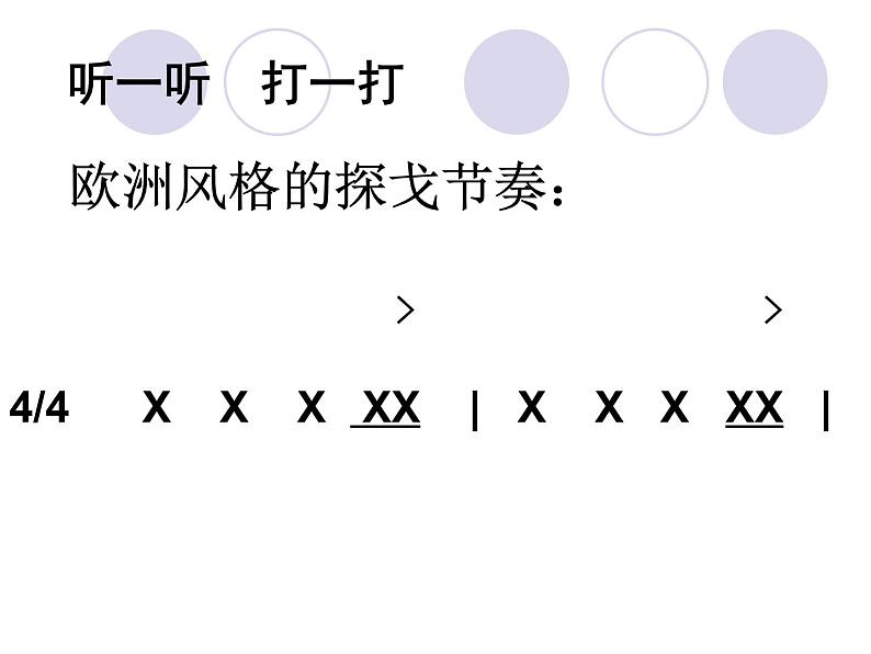欧洲风格的探戈节奏: > >4/4 X X X XX | X X X XX |拉丁美洲风格的探戈节奏: > >4/4 X · X X X | X X X X X |
