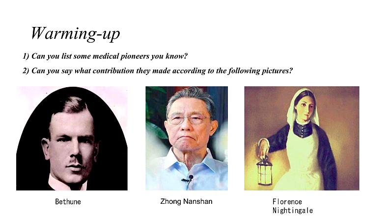 展开1) Can yu list sme medical pineers yu knw?2) Can yu say what cntributin they made accrding t the fllwing pictures?
