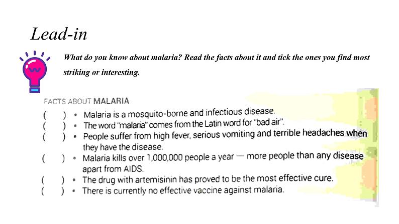 What d yu knw abut malaria? Read the facts abut it and tick the nes yu find mst striking r interesting.