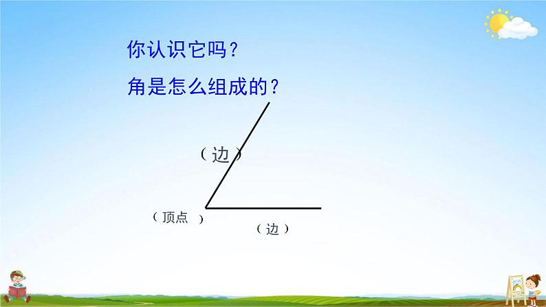 你认识它吗?角是怎么组成的?﹙边﹚﹙顶点 ﹚ ﹙边﹚